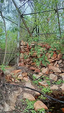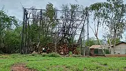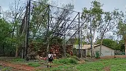 Close-up of the ruins of the palm cockatoo cage in 2024