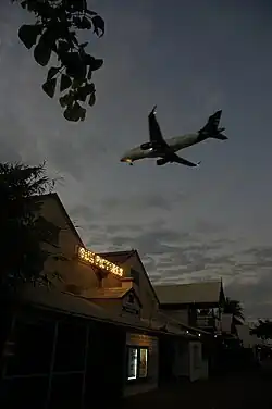 A plane descending over Sun Picture Gardens towards Broome International Airport, 2018