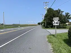 When routes were legislated in Pennsylvania in 1911, the current routing of PA 241 was designated as part of Legislative Route 280, which continued southeast from Bainbridge to Columbia.[5] By 1926, the roadway between Elizabethtown and Lebanon was paved while the road southwest from Elizabethtown to Bainbridge was unpaved.[6] PA 241 was designated in 1928 to run from PA 441 in Marietta north to PA 72 in Lebanon. The route followed Maytown Road north to Maytown, Stackstown Road west to Bainbridge, and PA 441 northwest before it continued northeast along its current alignment to Lebanon and north along Quentin Road to end at PA 72 at Cornwall Road. The entire length of route was paved by 1930.[7][8] In the 1930s, the southern terminus of PA 241 was cut back to PA 340 (now PA 743) in Maytown, with PA 340 replacing the route between Marietta and Maytown.[9] The northern terminus was moved to its current location in the 1950s following the rerouting of PA 72 to Quentin Road.[10][11] The southern terminus of the route was cut back to its current location at PA 441 near Bainbridge in 1961.[12] On June 28, 2021, construction began on a roundabout at Rocherty Road in North Cornwall Township.[13] Construction of the roundabout, which cost $3.4 million, was completed in October 2021.[14]