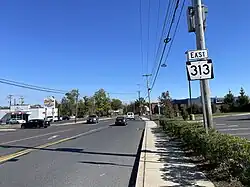 Pennsylvania Route 313 (PA 313) is a mostly 2-lane, 18-mile-long (29 km) state highway entirely within Bucks County, Pennsylvania. The western end of PA 313 is at an intersection with PA 309 and PA 663 in Quakertown. The eastern end is at an intersection with PA 263 in the Doylestown Township community of Furlong. PA 313 is signed an east–west road, although it runs almost purely northwest–southeast through most of its course. It is a major arterial road in central and northern Bucks County as it connects several communities including Quakertown, Dublin, and Doylestown.