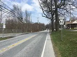 Pennsylvania Route 82 (PA 82) is a 32-mile-long (51 km) north–south state highway located in Chester County in southeast Pennsylvania, USA. The southern terminus is at the Delaware state line southeast of Kennett Square, where the road continues south into that state as Delaware Route 82 (DE 82). The northern terminus is at PA 23 in Elverson. PA 82 heads through rural areas of Chester County along with the communities of Kennett Square, Unionville, and Coatesville. The route intersects many important roads including U.S. Route 1 (US 1) near Kennett Square, PA 162 and PA 842 in Unionville, US 30 in Coatesville, and US 322 in Brandywine Manor. PA 82 is a two-lane undivided road most of its length.