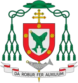 Conforming to heraldic rules, the colours that feature in the arms – green, white and red – correspond to the Italian Tricolour, in reference to the bishop's family origins and to the years spent in Rome at the Pontifical Scots College, first as an undergraduate and post-graduate student, from 1969 to 1980, and ultimately as rector from May 2004 until November 2005, when he was ordained bishop.[21]