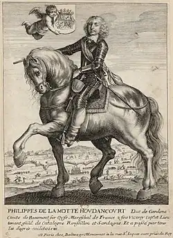 Philippe, Comte de la Mothe-Houdancourt (1605 – 24 March 1657) was a French soldier and Marshal of France, who served as Viceroy of Catalonia when it was occupied by France during the Franco-Spanish War. He was awarded the Spanish title of Duke of Cardona in 1642, but this was disputed and not commonly used.