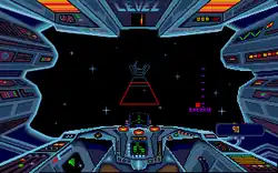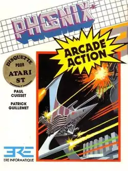 Phoenix is a single-player first-person space flight shooter released in 1987 by ERE Informatique for the Atari ST.[1] It was later published by Infogrames for the British market.[2] The game consists of piloting a spaceship across hyperspace routes represented by colored wireframe tiles created with vector graphics while shooting hostile gun turrets and black holes.[2][3][4]