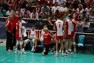 The Poland men's national volleyball team (Polish: Reprezentacja Polski w piłce siatkowej mężczyzn) represents Poland in international volleyball competition. The team is directed by the Polish Volleyball Federation (Polski Związek Piłki Siatkowej, PZPS), the governing body for volleyball in Poland, which represents the country in international competitions and friendly matches.