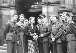 Initially 70 students originating from the military corps and 20 civilians entered medical studies at the PSM.[7] Polish nationals who were matriculated at the Polish School of Medicine (PSM) became full-time University of Edinburgh students and therefore enjoyed the same privileges as regular Edinburgh University students.[2] Their studies, including the fee of £2.50, were funded by the Polish authorities. From the very beginning, thanks to the tireless efforts of the staff members, the courses at the PSM were very highly regarded by the University of Edinburgh authorities. Students attended seminars and lectures within the College of Medicine buildings at Bristo Street and clinical training took place at the Royal Infirmary, Royal Sick Children Hospital and the City Hospital. From October 1941 students were also taught in the Paderewski Hospital, located in the grounds of the Western General Hospital. Under Defence regulation 32B the General Medical Council was able to register doctors who had qualified in countries such as Poland temporarily. In 1941 such doctors could be placed on the Medical Register and in 1947 they were placed on the permanent register under the Medical Practitioners and Pharmacists Act 1947 (11 & 12 Geo. 6. c. 11). As the British authorities recognised the right of Polish professors to work as doctors in the UK during the war, this allowed them to teach the students within Scottish wards. On a day-to-day basis Polish nationals encountered great support from the Scottish community. In December 1941 student accommodation for PSM students opened at Grosvenor Crescent, in the city centre. On 17 July 1941 (only four months after the PSM was established) the first medical degree was awarded to a former Kraków Jagiellonian University medical student, Konrad Bazarnik.[2] On 12 December 1941 further degrees were granted to Wladyslaw Galuszka, Jadwiga Mickiewicz, Ferdynand Solich and Stanislaw Sychta.[2] The Polish School of Medicine students joined the Polish military forces after graduation.