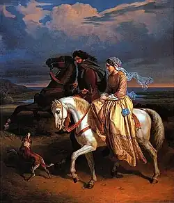 From 1843 to 1844, he accompanied the Duke Saverio di Blancas on a trip through Syria and Greece. During this time he drew many Arab subjects, and painted The Departure of Tobias with Rachel from the House of Laban for his patron Count Papadopoli and Sara gives Agar as wife to Abraham. He then traveled to Florence, Rome, Paris, and Munich. During 1848–1849, he participated in some of the patriotic uprisings.[4]