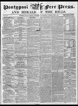 - ^ a b "Pontypool Free Press and Herald of the Hills". Welsh Newspapers Online. National Library of Wales. Retrieved 28 September 2016.