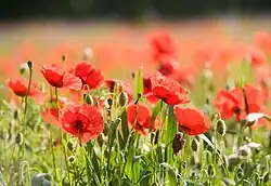 "Poppies" is an inner dialogue poem written by Mary Oliver. The poem is focused on elements of nature, a common thread within Oliver's poetry, and calls readers to focus on the instruction that nature might supply.[1][2][3]