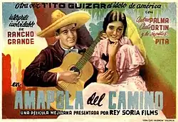 Poppy of the Road (Spanish: Amapola del camino) is a 1937 Mexican musical drama film directed by Juan Bustillo Oro and Antonio Guzmán Aguilera and starring Tito Guízar, Andrea Palma and Margarita Mora.[1] [2] The film's sets were designed by the art directors José Rodríguez Granada, Ramón Rodríguez Granada and Carlos Toussaint. Future stars Pedro Armendáriz and Esther Fernández appeared in smaller roles.
