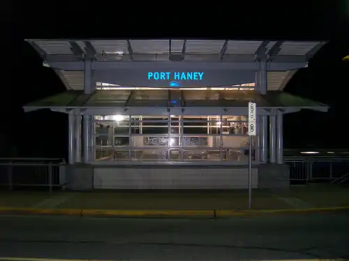 Port Haney station is a commuter rail station served by the West Coast Express line which connects Vancouver and Mission in British Columbia, Canada. The station is located on the north side of the Canadian Pacific Railway (CPR) tracks in Maple Ridge, just off River Road and 223rd Street. The station opened in 1995, when the West Coast Express began operating. All services are operated by TransLink.