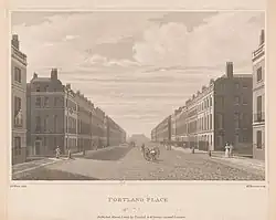 The street was laid out by the brothers Robert and James Adam for the Duke of Portland in the 1770s and originally ran north from the gardens of a detached mansion called Foley House. It was said that the exceptional width of the street was conditioned by the Duke's obligation to his tenant, Lord Foley, that his views to the north would not be obscured.[1]