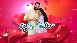 Pranayam (transl. Love) is a 2015 Indian Malayalam-language television series that was broadcast on Asianet.[1] Srinish Aravind and Varada play the lead roles.[2][3] It is the remake of Yeh Hai Mohabbatein, which aired on StarPlus.[4][5] It shows the love of two different states and two different cultures. The pair was known as #SharMi on social networking sites. After Varada quit the show citing health issues,[6] ratings tanked and the show was cancelled.