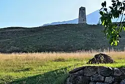 As a result of the policy of the government of the Russian Empire in the North Caucasus, aimed at deporting the highlanders from part of the plains and foothill settlements, a strip was created on the lands that previously belonged to the Ingush, which was a line of Cossack villages, the Sunzha Line, dividing the plain from mountainous Ingushetia.[9] In the middle of the 19th century, the Ingush were evicted from a number of villages located on the territory of the present-day Prigorodny district, after which the Cossack stanitsa Tarskaya was built on the site of the village Angusht.[10] The same happened on other Ingush lands: on the site of the village Akhki-Yurt appeared the Sunzhenskaya stanitsa; on the site of the village Tauzen-Yurt — the Vorontsovsko-Dashkovskaya stanitsa; on the site of the village Akh-Borze — the Assinovskaya stanitsa, on the site of the village Mahmad-Khithe — the Voznesenskaya stanitsa; on the site of the village Alkhaste — the Feldmarshalskaya stanitsa; on the site of the village Ghazhara-Yurt — the Nesterovskaya stanitsa; on the site of the village Ildarkha-Ghala — the Karabulakskaya stanitsa; on the site of the village Ebarg-Yurt — the Troitskaya stanitsa; on the site of the village Sholkhi — the Tarskiy khutor, as well as the Sleptsovskaya, Datikhskaya, Mikhailovksya and Galashevskaya stanitsa's.[11]