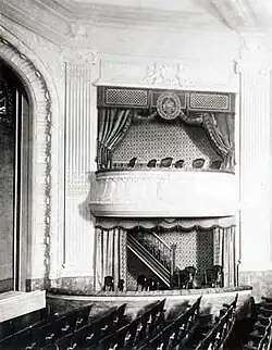 Though fairly drab on the outside, looking like a six-story office building, except for its marquees and gaudy electric sign over the main entrance, the Princess was elegant inside. A blend of Georgian and French Renaissance styles, the auditorium contained fourteen rows of seats and twelve boxes off the proscenium arch and was hailed for its excellent acoustics and sight-lines. The decor included neoclassical inspired plasterwork and antique French tapestries hung from the side walls.