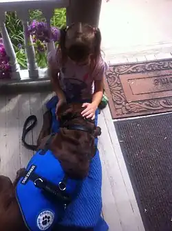 A psychiatric assistance dog or psychiatric service dog is a sub-category of assistance dog trained to assist their handler with a psychiatric disability or a mental disability, such as obsessive-compulsive disorder, post-traumatic stress disorder, schizophrenia, depression, anxiety, and bipolar disorder.[1][2]