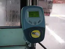 An older EZ-Link card reader on board an SMRT bus. EZ-Link contactless smart cards were first introduced in 2002