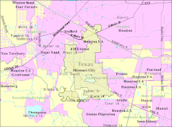 4. ^ from "Missouri City GIS Mapping: Subdivisions". Archived from the original on 9 September 2007. Retrieved 13 February 2009.