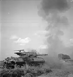 This time there was no sudden order to join the front line actions soon as war broke out, and the regiment was detailed to perform home defence duties.[87] Having initially trained in Southern Command, 61st Division was sent to Northern Ireland in June 1940 during the post-Dunkirk invasion crisis. Soon after arrival 63rd A/T Rgt transferred to 53rd (Welsh) Infantry Division. For a while it came under Northern Ireland District, then reverted to 53rd (W) Division on 12 April 1941. Shortly afterwards 53rd (W) Division returned to mainland Britain and 63rd A/T Rgt rejoined 61st Division on 21 June.[89][91][93]