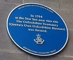 Blue plaque commemorating the founding of the Oxfordshire Yeomanry