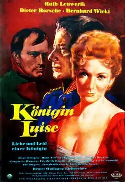 Queen Louise (German: Königin Luise) is a 1957 West German historical drama film directed by Wolfgang Liebeneiner and starring Ruth Leuwerik, Dieter Borsche and Bernhard Wicki. It was made at the Emelka Studios in Munich, with sets designed by the art director Rolf Zehetbauer. It was one of a number of films made during the 1950s that portrayed historical royal Germany in a positive manner.[1] It is similar in theme to the Prussian film genre which had been popular between the two World Wars including two previous films about Louise Queen Louise (1927) and Louise, Queen of Prussia (1931).