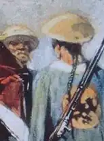 The queue hairstyle predates the Manchus. The Chinese word for queue, bian, meant plaited hair or a cord. The term bian, when used to describe the braid in the Manchu hairstyle, was originally applied by the Han dynasty to the Xiongnu. Jurchen people wore a queue like the Manchu, the Khitan people wore theirs in Tartar style and during the Tang dynasty, tribes in the west wore braids.[8][9] The Xianbei and Wuhuan were said to shave their heads, while Xiongnu had queues. Other evidence from Chinese histories indicate that the Tuoba or Tabgach groups of the Xianbei wore braids, since they were called "braided" by the southern Chinese. However, their hairstyle is hidden in depictions due to a hood they wore. The Liu Song dynasty's records called them "braided caitiff", suolu, while Southern Qi's history said they wore their "hair hanging down the back" (pifa), and called them suotou, "braided". A braid of hair was found at Zhalairuoer in a Tuoba grave.[10]