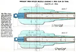 Mark I was introduced in 1867. Mark II was introduced in 1871 using the simpler and cheaper "Fraser" gun construction method which had proved successful with the RML 9-inch 12-ton Mk IV gun.[4]
