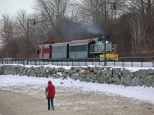 On January 28, 2010, the Northern New England Passenger Rail Authority (NNEPRA) received approval for a $35 million grant from the federal government to fund track and signal upgrades for the Portland-Brunswick line.[14] Pan Am Railways began work on the line in summer 2010. Service to Brunswick returned on November 1, 2012.[15][16][17]