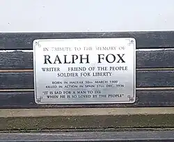 - ^ Pollitt, Harry (1937). "Ralph Fox: A Tribute". Marxist.org. Retrieved 29 January 2021.