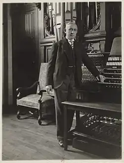 Max Reger was a composer whose dedication to Bach has been described as a "monomaniacal identification" by the musicologist Johannes Lorenzen: in letters he frequently referred to "Allvater Bach". During his life, Reger arranged or edited 428 of Bach's compositions, including arrangements of 38 organ works for piano solo, piano duet or two pianos, starting in 1895. At the same time he produced a large number of his own organ works. Already in 1894, the organist and musicologist Heinrich Reimann, reacting to modernist trends in German music, had encouraged a return to the style of Bach, stating that, "Beyond this style there is no salvation ... Bach becomes for that reason the criterion of our art of writing for the organ." In 1894–1895 Reger composed his first suite for organ in E minor which was published in 1896 as his Op.16 with a dedication "To the Memory of Johann Sebastian Bach". The original intention was a sonata in three movements: an introduction and triple fugue; an adagio on the chorale Es ist das Heil uns kommen her; and a passacaglia. In the final version, Reger inserted an intermezzo (a scherzo and trio) as the third movement and expanded the adagio to contain a central section on the Lutheran hymns Aus tiefer Not and O Haupt voll Blut und Bunden. In 1896, Reger sent a copy of the suite to Brahms, his only contact. In the letter he asked permission to dedicate a future work to Brahms, to which he received the reply, "Permission for that is certainly not necessary, however! I had to smile, since you approach me about this matter and at the same time enclose a work whose all-too-bold dedication terrifies me!" The overall form of the suite follows the scheme of the eighth organ sonata Op.132 (1882) of Joseph Rheinberger and the symphonies of Brahms. The final passacaglia was a conscious reference to Bach's organ passacaglia in C minor BWV 582/1, but has clear affinities with the last movements of both Rheinberger's sonata and Brahms' fourth symphony. The second movement is an adagio in ternary form, with the beginning of the central section directly inspired by the setting of Aus tiefer Not in the pedaliter chorale prelude BWV 686 of Clavier-Übung III, paying homage to Bach as a composer of instrumental counterpoint. It has a similarly dense texture of six parts, two of them in the pedal. The outer sections are directly inspired by the musical form of the chorale prelude O Mensch, bewein dein Sünde groß BWV 622 from the Orgelbüchlein.[b] The suite was first performed in the Trinity Church, Berlin in 1897 by the organist Karl Straube, a student of Reimann. According to a later account by one of Straube's students, Reimann had described the work as "so difficult as to be almost unplayable," which had "provoked Straube's virtuosic ambition, so that he set about mastering the work, which placed him before utterly new technical problems, with unflagging energy." Straube gave two further performances in 1898, in the cathedral at Wesel, where he had recently been appointed organist, and prior to that in Frankfurt, where he met Reger for the first time. In 1902, Straube was appointed organist at the Thomaskirche and in the following year cantor; he became the main proponent and performer of Reger's organ works.[90][91]