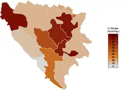 Distribution of Muslims in Bosnia and Herzegovina (2013)[11][12]