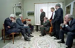 Gunn was able to utilize Iceland's production rebate program to film on location.[7][8] Filming began on 15 October 2024 in Reykjavík.[3] The majority of filming took place at Höfði, the actual site of the 1986 summit,[9][10] which cost 6.3 million króna to rent from the city of Reykjavík.[11] Sæbraut, a local road in the city, was closed for filming purposes on 19 October and 26 October.[12][13] Additional filming locations included the Blue Lagoon, Skeggjastaðir, Mosfellsdalur, and Reykjanes.[12] Filming was expected to be completed by mid-November 2024.[14]