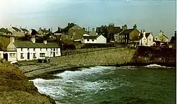 Moelfre ([ˈmɔɨ̯lvrɛ] ⓘ) is a village, a community and, until 2012, an electoral ward on the north-east coast of the Isle of Anglesey in Wales. The community area covers the village and harbour, and several smaller, dispersed settlements. It includes six scheduled Iron Age hut groups and many other sites of archaeological interest. The harbour was formerly a local fishing port; a lifeboat station has been based here since 1854. Among many shipwrecks off the coast was that of the Royal Charter in 1859. Near the modernised lifeboat station is the RNLI Seawatch Centre. The coastline includes a rocky headland north of the village and a large sandy beach at Lligwy Bay, both traversed by the Anglesey Coastal Path. The 2011 census measured the village population as 710.[2] It was estimated at 614 in 2019.