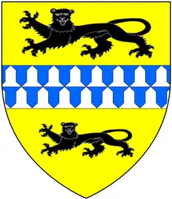Arms of Hooker alias Vowell, of Exeter: Or, a fess vair between two lions passant guardant sable[1]