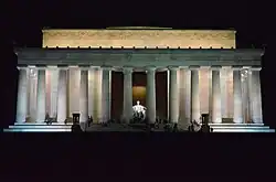 Nixon, Sanchez, senior White House doctor Walter R. Tkach and Secret Service agents then drove to the memorial in a presidential limousine, with Nixon later recalling that he had "never seen the Secret Service quite so petrified with apprehension". Upon arrival Nixon and Sanchez walked up the steps to the statue of the seated Lincoln with Nixon pointing out the carved inscriptions of Lincoln's Second Inaugural Address and his Gettysburg Address.[2] White House Deputy for Domestic Affairs Egil Krogh was also present.[3]