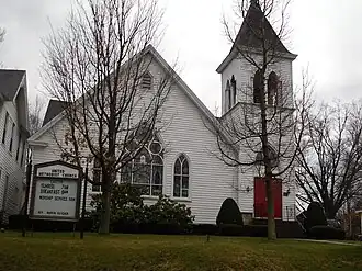Richmondville United Methodist Church is a historic United Methodist church at 266 Main Street in Richmondville, Schoharie County, New York. It is a nearly square building with an engaged entrance / bell tower built about 1900. The two story, gable and hipped roof, wood frame parsonage was built in 1893.[2]