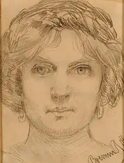 Ritta Boemm (1868 – 1948) was a Hungarian artist. She was considered talented among Dresden's women artists. Her gouache pictures dealing with Hungarian subjects, a "Village Street", a "Peasant Farm", a "Churchyard", exhibited at Dresden in 1892, were well drawn and full of sentiment, but lacking in color sense and power. She worked unevenly and seemed pleased when she succeeded in setting a scene well. She also painted portraits, mostly in pastel, which were described as spirited, but not especially good likenesses. What she could do in the way of color was noted in her "Village Street in Winter", a picture of moderate size, in which the light was exquisite. However, most of her paintings were less notable than this one.[1]