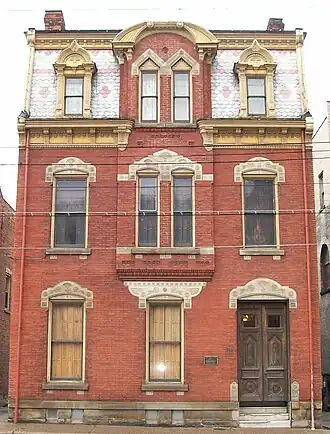 Robert W. Hazlett House is a historic home located at Wheeling, Ohio County, West Virginia. It was built in 1887, and is a three-story Second Empire style brick residence measuring 30 feet (9.1 m) wide and 112 feet (34 m) deep. It features a central hooded bay and a polychrome slate-covered mansard roof. The interior has many Queen Anne style details. In 1991, it housed Friends of Wheeling, Inc., a private, non-profit, historic preservation organization and four apartments.[2]