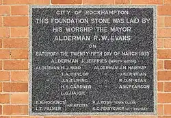 Robert William Evans laid the foundation stone at the site of the Rockhampton Town Hall in 1939