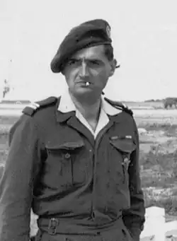 The British flew La Rochefoucauld to London, where they trained him to jump out of aeroplanes, set off explosives and kill a man quickly using his hands. In June 1943 they parachuted him into France, where he destroyed an electric substation and blew up railroad tracks at Avallon, but was captured and condemned to death by the Nazis. While being taken for execution, he jumped from the back of his captors' truck, dodged bullets, then ran through nearby streets. He ended up outside a German headquarters, where he spotted a limousine flying a swastika flag, its driver nearby and the keys in the ignition.[2] He drove off in the car and then caught a train to Paris, hiding in one of its bathrooms. The Daily Telegraph quoted him as saying, "When we arrived in Paris, I felt drunk with freedom."[1][2] The SOE later evacuated him to England.[5]