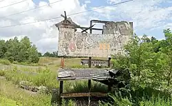 The former entrance sign of Rocky Glen Park is the only remaining structure of the park