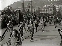 - ^ and against "internacionalismo judaico marxista". The piece contained venerating references to Franco, hailing thousands of requeté who fell "luchando a las órdenes de nuestro glorioso y querido Caudillo Franco, por el triple lema de su bandera, por Dios, por la Patria y Rey", Pensamiento alavés 22.02.38, available here