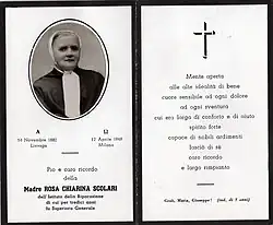 Rosa Chiarina Scolari (Livraga, 16 November 1882 – Milan, 12 April 1949) was an Italian nun who helped the Italian resistance movement in Milan during the final days of World War II.