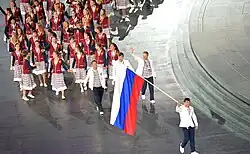 - ^ "Проводы команды России на I Европейские игры в Баку" [Introduction of Team Russia for the First European Games in Baku] (in Russian). Russian Olympic Committee. 1 June 2015. Retrieved 4 July 2015.