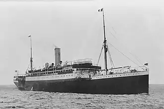 In 1919 the United Kingdom seized the ship.[1] The Shipping Controller took ownership of her, and appointed the Orient Steam Navigation Company to manage her. She was registered in London. Her UK official number was 143195 and her code letters were JWQB.[29] The UK used her as a troop ship.[30]