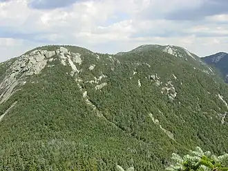 Saddleback Mountain is a mountain in the Great Range of the Adirondacks in the U. S. state of New York. It is the 17th-highest of the Adirondack High Peaks, with an elevation of 4,515 feet (1,376 m). It is located in Adirondack Park in the town of Keene in Essex County. The mountain was named for the outline of its ridge, which resembles a saddle, by Orson Schofield Phelps and Frederick Perkins.[4] It is flanked by Basin Mountain, the ninth highest of the High Peaks, and Gothics, the tenth highest. Good views of the two higher mountains are offered from the summit of Saddleback.[4] The mountain straddles the watersheds of Johns Brook and the Ausable River.[4] The earliest recorded ascent was made by amateur climber Newell Martin on August 5, 1894. It was claimed that an earlier ascent was made by patent lawyer James J. Storrow and mountain guide Orlando Beede, but the date of this climb is unknown.[4]