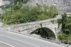 The narrow canyon at Saint-Maurice facilitated both trade and defense. The bridge over the Rhone was built around the 12th century and was the first bridge upstream of Lake Geneva after the Roman bridge of Massongex (2 km downstream Saint-Maurice). The fortifications in the canyon was gradually expanded in 1831, 1848, 1859 and finally in 1892. During the Second World War, the fortifications at Saint-Maurice were one of the three main pillars of the National Redoubt. In 1995, the fortifications were abandoned and opened as a tourist attraction. Following the army reforms of Armee 95 and XXI, the former mountain infantry military base of Saint-Maurice-Lavey has served as a training camp for the military police.[5]