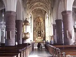 An exterior restoration in 1910 gave the church a new copper roof and a sandstone socle. A new restoration in 1932–37 resulted in the present rather bare interior, with no changes since except a minor restoration in 1969.[1]