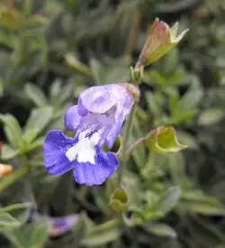 Salvia muirii (Muir's sage) is an evergreen perennial shrub native to limited areas east of the Cape of Good Hope and Mossel Bay on the southern coast of South Africa. It grows in an area influenced by the climate of the Indian Ocean, on rolling hills between 200 and 1000 feet elevation.[1] The plant was first collected by Dr. John Muir, a Scottish physician and plant collector who spent many years in South Africa.[2] Muir wrote to the botanist Harriet Margaret Louisa Bolus, who named the plant after him.