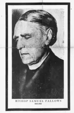 - ^ "Wife of Bishop Fallows, Chicago, dies, aged 76". Wisconsin State Journal. Chicago. July 31, 1916. p. 3. Retrieved August 10, 2020 – via Newspapers.com.